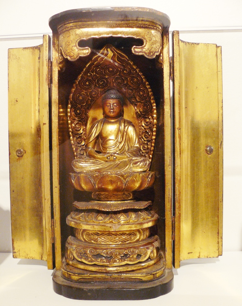 Butsudan (Amida Buddha in Meditation), 16th century. Carved, gilded, and lacquered wood, 11 ½ x 5 x 4 ½ in. Gift of Sennosuke Ogata, Richard E. Peeler Art Center, DePauw University, Greencastle.