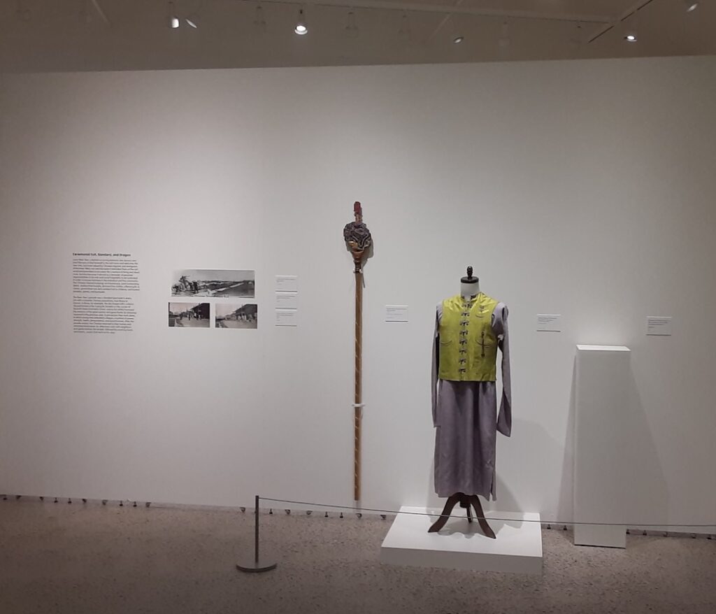 Chinese Banquet Suit, ca. 1900, and Parade Standard, ca. 1905. Idaho State Museum, Boise. Upper Gallery, Yellowstone Art Museum